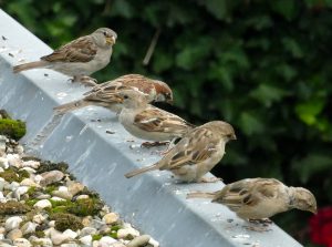 Huismussen doen het liefst alles samen: broeden, eten, baltsen, stofbaden nemen. Ook uitslapen doen ze gemeenschappelijk, je hoort ze meestal pas tjilpen als allerlei vroege vogels hun snavel al weer houden. Huismussen kenden al een vorm van ‘noaberschap’ voor iemand van Twente of de Achterhoek gehoord had. Het zijn dorpse vogeltjes met een wat beperkte horizon, ze brengen hun hele leven door in de directe omgeving van hun huis. Echte huismussen, dus. Trekvogels vinden ze vermoedelijk kieskeurige snobs, want waarom zo moeilijk doen en de halve wereld overvliegen als je nestplekken, voedsel en beschutting ook vlakbij kunt vinden?