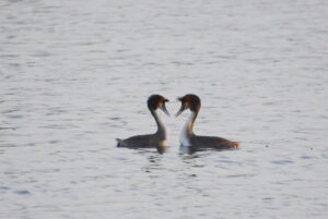 Dit is de tijd van het jaar dat de lente in de lucht hangt. Ik word daar altijd erg blij van en probeer zoveel mogelijk buiten te zijn. Even een blokje om, een stukje wandelen in de natuur of een rondje fietsen. Mijn neus in de wind, mijn oren gespitst (hoor ik al nieuwe geluidjes?) en mijn camera mee. Vandaag heb ik een afspraak buiten de deur en ik grijp de gelegenheid aan om vooraf een stukje langs de Vinkeveense Plassen te lopen. Het vele gezang van flirtende vogeltjes in de bomen en struiken, de gevechten om het mooiste vrouwtje of het sterkste mannetje en om mij heen worden er druk nestjes gebouwd. Aalscholvers vliegen af en aan met takjes in hun snavels op weg naar de kolonie verderop in de hoge bomen. Er is momenteel zoveel te zien en te horen als je de natuur in gaat. Zelfs in je eigen tuin, of onderweg naar de supermarkt kun je van alles zien als je dat tenminste wil. Groot is mijn verbazing als ik een wandelaar zie lopen die met haar mobiel in de hand een gesprek loopt te voeren. Ze heeft duidelijk geen oog voor alles om haar heen. Vanmorgen kwam ik ook al een hardloper tegen met oortjes in. Ik passeer de wandelaar en mijn groet ontgaat haar volledig. Snel focus ik me weer op mijn omgeving. Die mensen missen zoveel moois. In de plas hoor ik een hoop kabaal en zie dat er meerdere meerkoeten rondzwemmen met hun achterkant omhoog. Ze draaien rondjes om elkaar heen en af en toe rennen er een paar achter elkaar aan. Ja, ze rennen letterlijk over het water! Een zwanenpaar zwemt gemoedelijk voorbij, zij hoeven niet te vechten want eenmaal gekozen blijven ze voor altijd samen. Dan hoor ik het geluid van twee futen die elkaar kennelijk wel zien zitten. Het is altijd weer een prachtig gezicht hoe zij elkaar het hof maken. En zo heeft elk dier zijn eigen manier om indruk te maken op zijn of haar partner. De een zingt het hoogste lied, de ander doet een dansje. En ik wandel er tussendoor en bekijk het allemaal op een afstandje, alsof ik in een natuurfilm loop. Ik zou zeggen mobiel weg, oortjes uit en genieten maar want ‘love is in the air’.