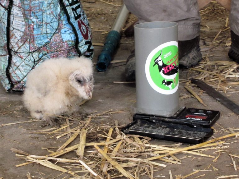 Met wegen van het gewicht wordt de conditie van de uil bepaald |