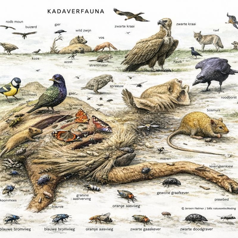 Kadaverfauna is essentieel voor de natuur, omdat het dode dieren een belangrijke bron zijn voor andere levensvormen. Kadavers helpen bij het herstel van de natuur door voedingsstoffen en mineralen te vormen die weer beschikbaar worden voor planten en schimmels.
