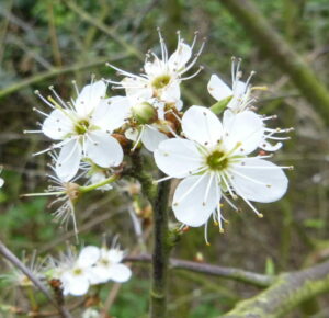 Bij de sleedoorn waren de eerste bloemen te zien, evenals bij de gele kornoelje. De bloemen van de meidoorn lieten nog even op zich wacht. Bij deze struik komen eerst de bladeren te voorschijn.