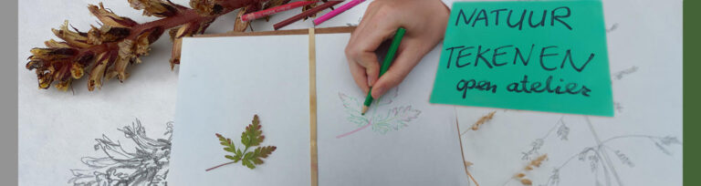 Kom samen tekenen! Neem de tijd om (eindelijk weer eens) zelfstandig te tekenen en haal inspiratie uit de natuur. Er zijn voldoende boeken en natuurtijdschriften aanwezig. Ook zijn er schedels van dieren en schelpen om na te tekenen. We tekenen in de natuurschuur vlakbij het Kleine Beestjes Paradijs en de Arboretum-Heemtuin!