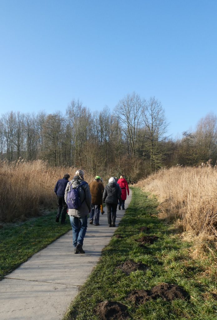 Terwijl de mistflarden snel door de zon werd verdrijven, trekt een groep van negen enthousiaste natuurliefhebbers o.l.v. natuurgids Dirk de Haan het Wisentbos in. We hebben er schitterend weer bij, deze 14e februari (zie foto’s). Onder het gezang van o.a. koolmezen en vinken wordt ons humeur er alleen maar beter op.