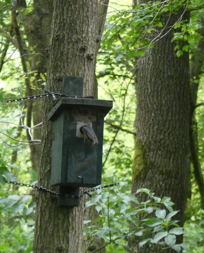 We steken de Wisenttocht over en vervolgen onze weg. Bij één van de nestkastjes valt op dat de spleet bovenin de nestkast is ’dichtgemetseld’. Hier moet een boomklever broeden.