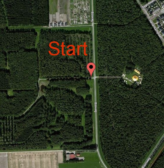 Het startpunt van de wandeling is aan de Bosweg in Swifterbant. Er is een gele [2,4 km] en een blauwe [3,1 km] wandelroute uitgezet.