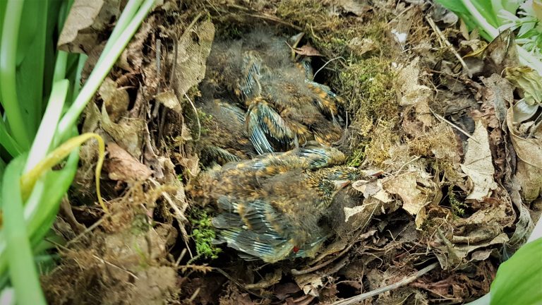 De ladder zorgvuldig en stabiel tegen de boom zetten bleek de lastigste opgave. Veilig er op kunnen klimmen en blijven staan belangrijk . Uit een boom vallen niet de bedoeling. Ook het nest verstoren niet, dus alle handelingen rondom de boom moesten zo stil mogelijk gebeuren. Zachtjes of helemaal niet praten en rustig bewegen. Het nestkastje aan de bovenkant voorzichtig openen, vaak met schroevendraaier, vond ik spannend. Wat zou je zien, eitjes, jonge vogels of nog een broedende ouder ? Iedere nestkast voelde als een surprise uitpakken vol verwachting over wat er in zou zitten. Echt fantastisch om een pimpelmees op het nest te zien zitten de eieren goed beschermd onder zich. Een verrassing waren de piep jonge boomklevers die omhoog staarden naar het mens dat een kijkje nam. Ik kon het niet laten en moest even een foto maken. Geweldig die wijd geopende snaveltjes van koolmeesjes of pimpelmeesjes omdat zij een ouder met voer hadden verwacht geen mensenhoofd.