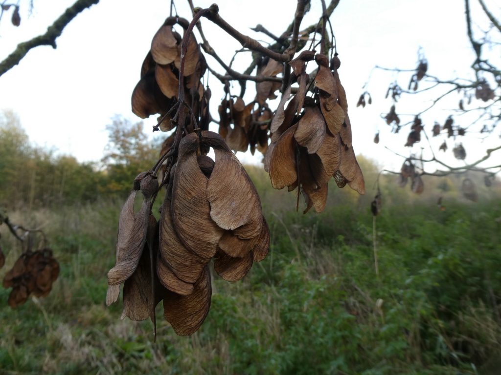 Kenmerkend zijn de trossen met gevleugelde vruchten, de zgn. ‘helikopters’. Als kind speelde je uren met deze ‘helikoptertjes’ door ze in de lucht te gooien en vervolgens te kijken hoe ze naar beneden dwarrelden. Deze vruchten worden ook wel ‘neusjes’ genoemd. Je kunt twee vruchten met hun vleugels op je neus klemmen.