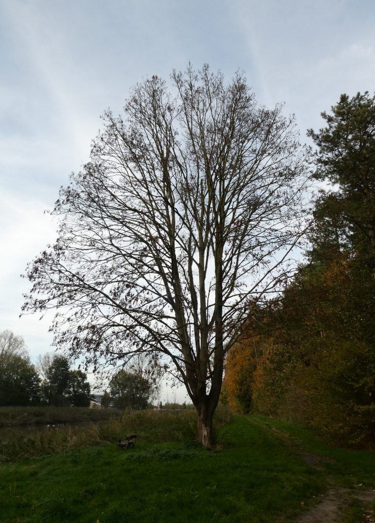 Wanneer je het wandelpad (van IVN) rechts bij de parkeerplaats neemt, loop je vanzelf tegen de Wisenttocht aan. Daar aangekomen staat bij het bankje een mooie esdoorn. Het is de gewone esdoorn of op zijn Latijns: Acer pseudoplatanus. Deze wetenschappelijke naam betekent: ‘onechte plataan’, vanwege de gelijkenis van het blad van de gewone esdoorn met het blad van de plataan.