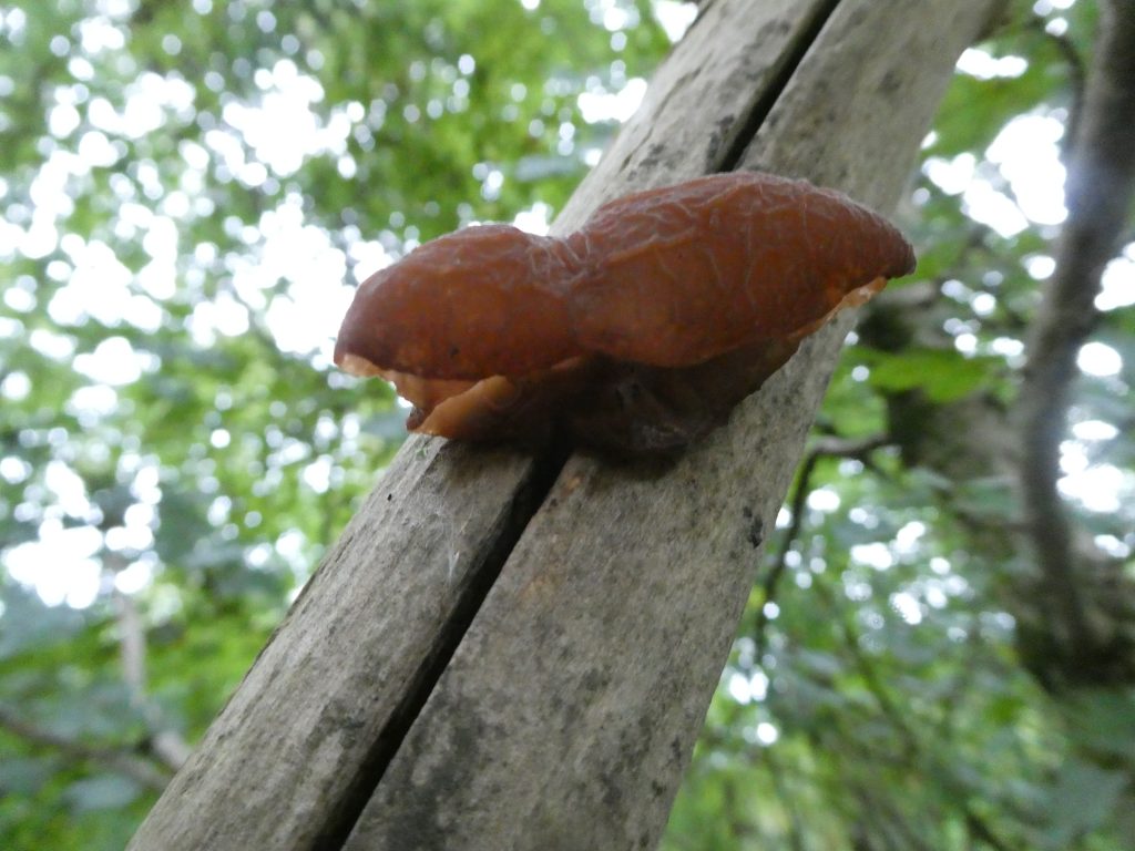 De derde bijzondere paddenstoel is judasoor. Je treft hem bij het wandelpad met de beuken. Iets verderop rechts van het pad bij de vlierstruiken is deze paddenstoel te zien.