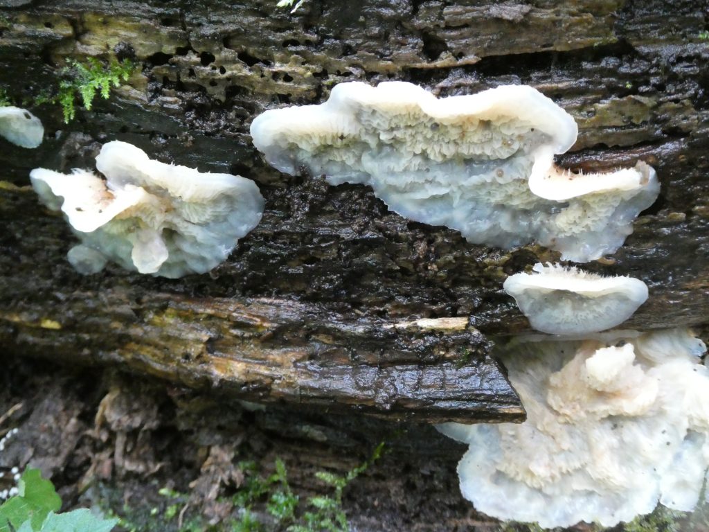 Dan de spekzwoerdzwam. Deze is te zien in het kleine bosje bij de groene brug over de Wisenttocht. De zwam voelt spekkig aan. Ik kijk altijd even aan de onderkant; die ziet wat rul en vaak wat roze. De vorm is zeer variabel, korstjes, losse lubben, dakpannetjes boven elkaar of rozetten.