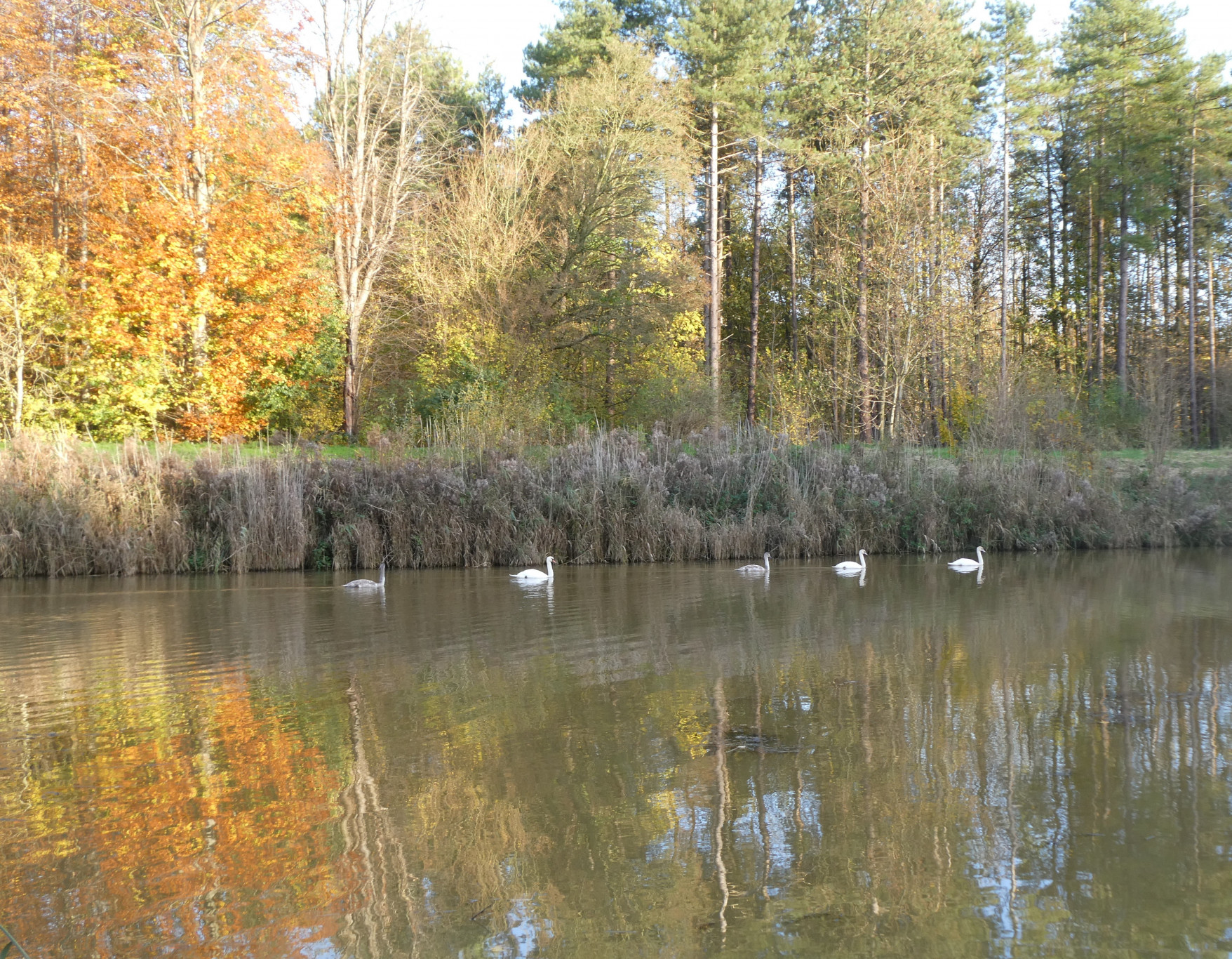 Dat is een vreemd gezicht. Daar waar de Wisentweg de Wisenttocht kruist, is het opeens een drukte van belang. Een grote groep eenden is er neergestreken. In deze tijd van het jaar zie je normaal gesproken hooguit een paar meerkoeten of een fuut of een groepje zwanen. Ook mooi trouwens vijf op en rij! Wanneer je de groep wat dichterbij haalt met de verrekijker (of de zoomlens van het fototoestel) zie je een paar vreemde eenden. Ik zie krakeenden en slobeenden.