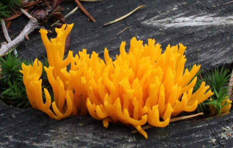 De felgekleurde kleverige koraalzwam op de foto valt wel erg op. Toch zijn de meeste paddenstoelen in het bos niet makkelijk te vinden. En je weet bijna nooit van te voren welke soorten je op een wandeling tegenkomt. Dus als u wilt weten waar ze staan en hoe ze heten, wandel dan zaterdag 18 oktober mee