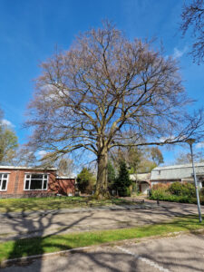 Opmerking van de inspecteur: De vertakkingen vanuit de hoofdstam ontspringen met een scherpe hoek. Mogelijk in de toekomst een kroonverankering inbrengen om het geheel te verstevigen. Bij volgende controle de aanhechtingen van de takken goed inspecteren.