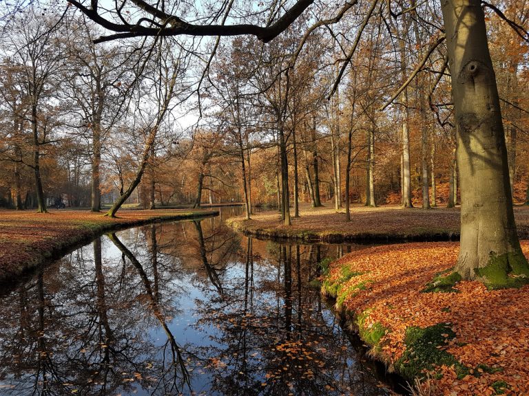 Wandeling over het landgoed met zijn imposante boompartijen en vijvers. Lengte: 4,5 km