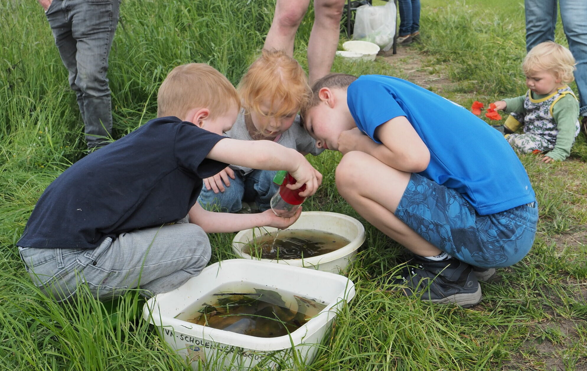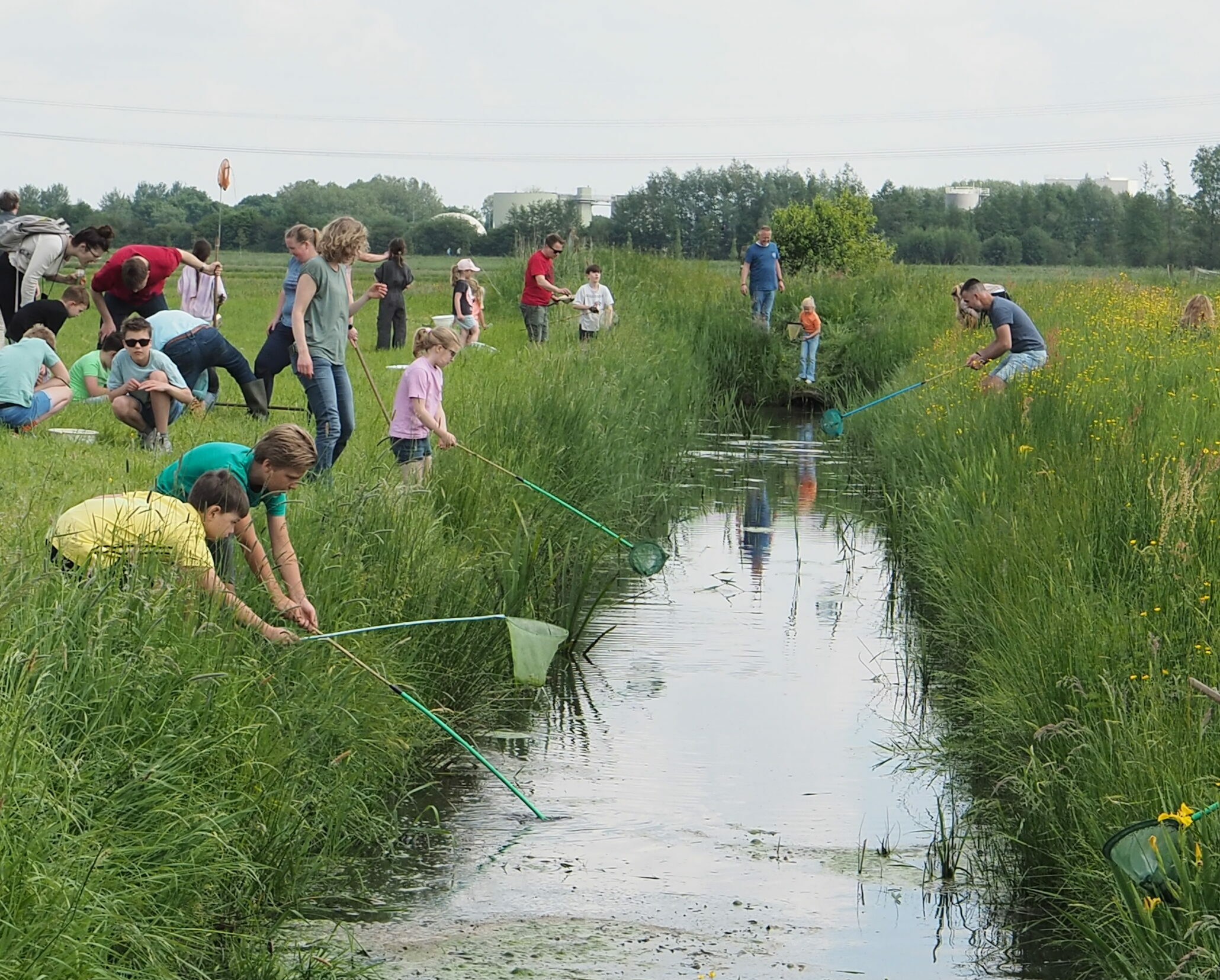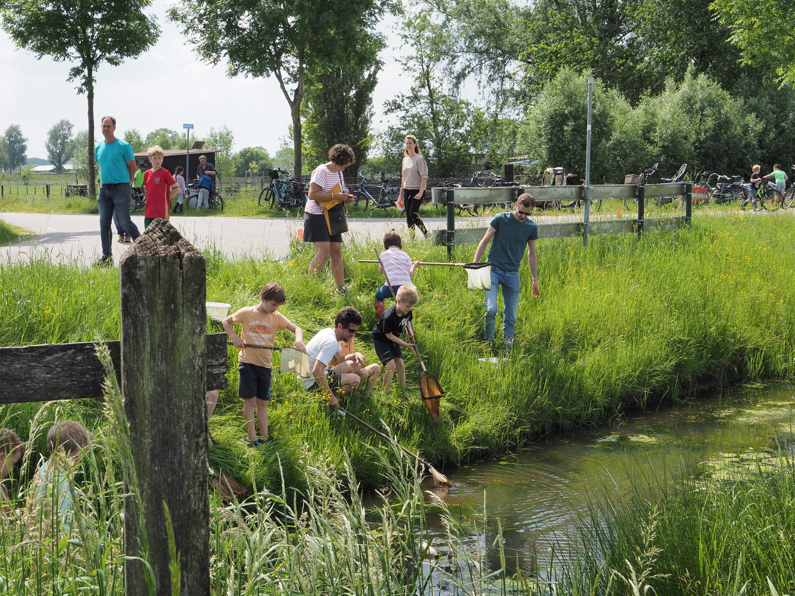 Gelukkig is er ruimte genoeg op onze standaard plek. Soms moest er even gewacht worden op een netje maar dat mocht de pret niet drukken. Jong en oud wist zich prima te vermaken. Wat is er dan ook veel te ontdekken in zo’n gewone sloot.