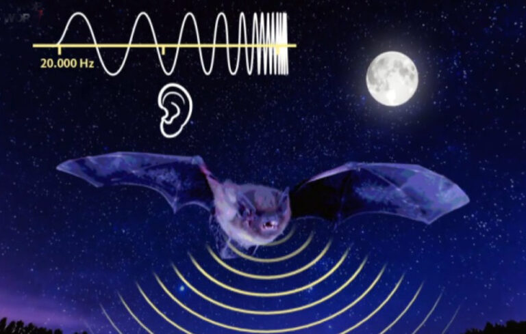 Vleermuizen hebben best goede ogen maar jagen en navigeren doen ze met geluid wat het beste omschreven kan worden als sonar (sound navigation and ranging). Een techniek die gebruikt maakt van geluid om voorwerpen te detecteren. Vleermuizen zijn, vliegende, zoogdieren die geluid uitstoten via hun bek en of neus om de vervolgens de echo’s te verwerken met hun oren. De frequentie waarmee dat gebeurt ligt boven de menselijke gehoorgrens. Dit noemen we ultrasoon.
