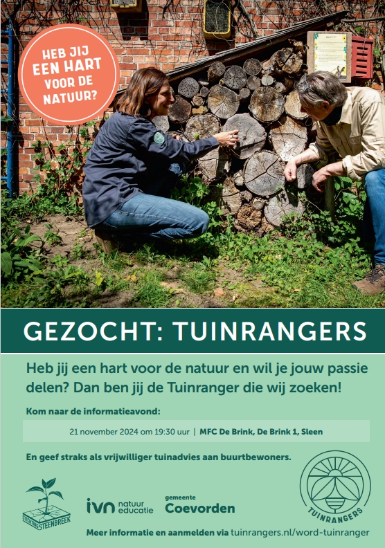 Vanaf volgend jaar start het project Tuinrangers in de gemeente Coevorden. Ze zoeken enthousiaste inwoners die tuinadvies willen geven aan hun buurtgenoten. Heb jij groene vingers en wil je bijdragen aan een groener, klimaatbestendig Coevorden? Meld je dan snel aan voor de informatie avond!