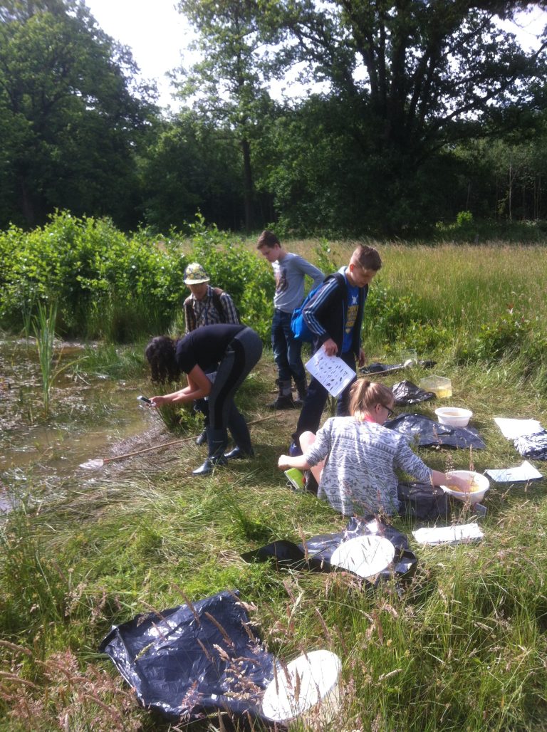 Jaarlijks in juni begeleiden IVN gidsen samen met leden van landschapsonderhoudsgroep EnHOe het veldwerk voor het poelenproject van het Bonhoeffercollege Van der Waalslaan.