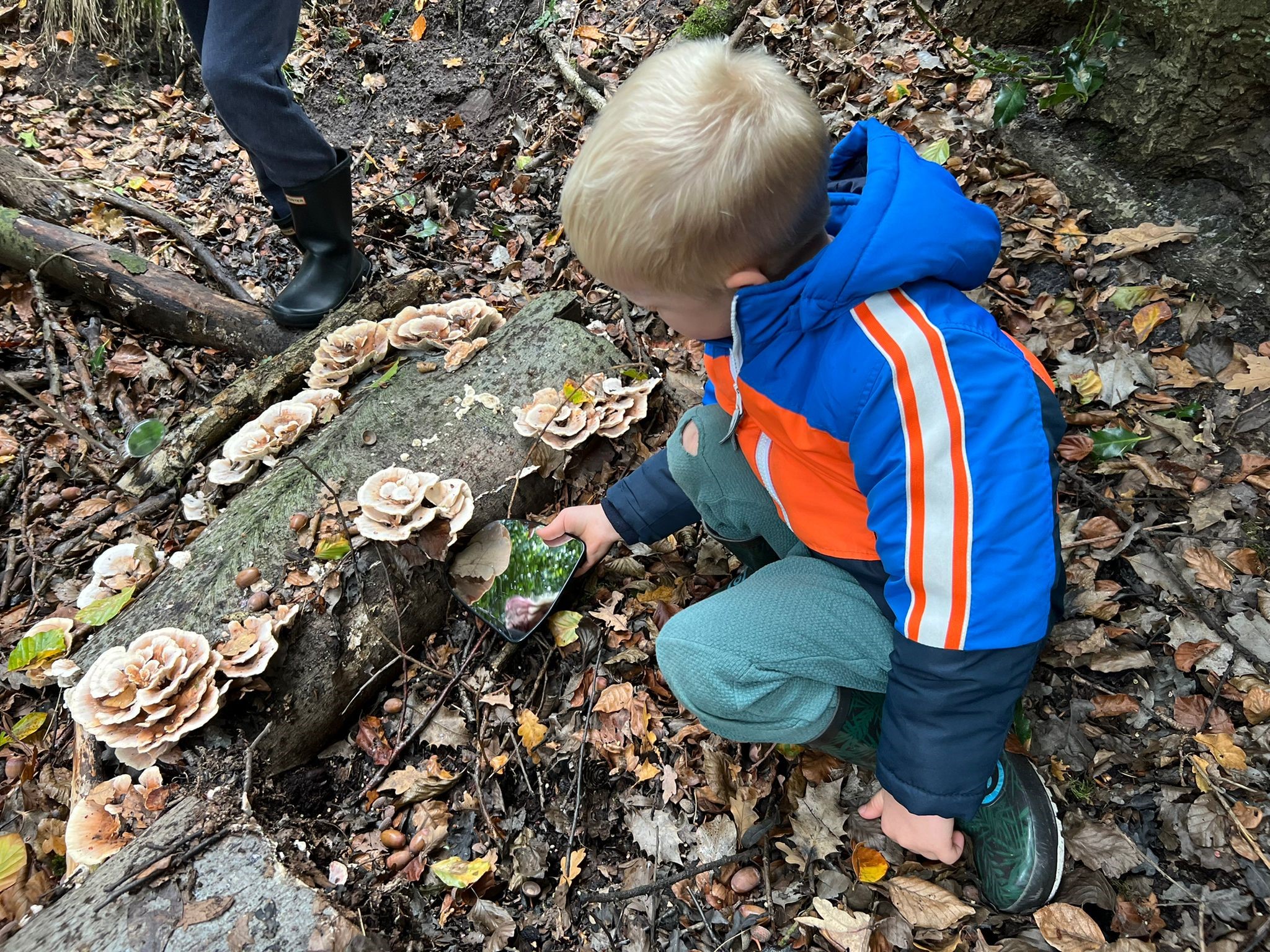 Tip: neem een klein spiegeltje mee. Het is heel leuk om de onderkant van een paddenstoel te bekijken. Zitten er gaatjes, buisjes, plaatjes of wel een heel doolhof? Draag bij nat weer laarzen!