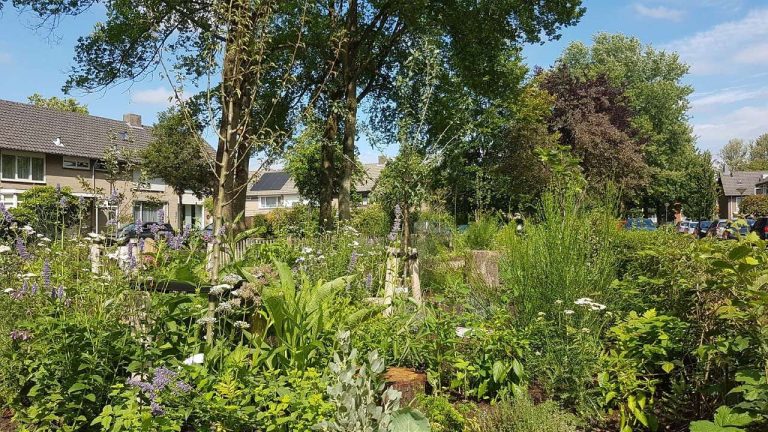Het eetbare parkje neemt niet alleen overtollig regenwater op, maar vergroot bovendien de biodiversiteit, koelt de omgeving, levert voedsel voor de buurt en verbindt mensen.