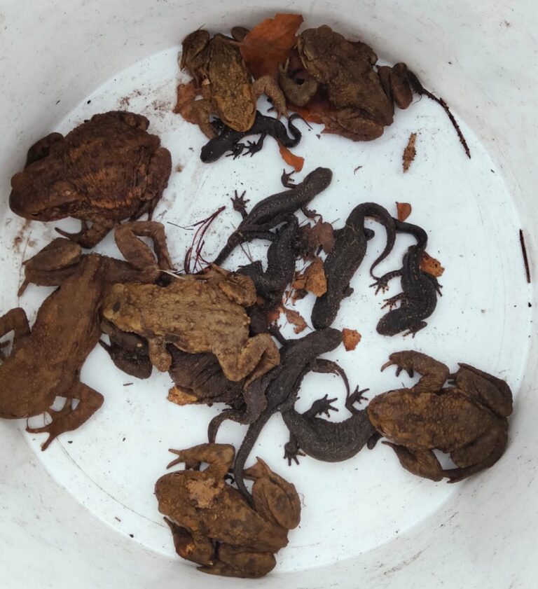Daarbij worden ook vele salamanders en bruine kikkers gered! Ook onze jeugdIVN-ers hebben een keer meegeholpen!