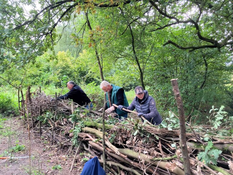 Met de enthousiaste hulp van zeven medewerkers van de Rabobank is donderdag 25 september de ril in het Voedselbos verlengd en aangevuld over de hele lengte! We zijn er erg blij mee!