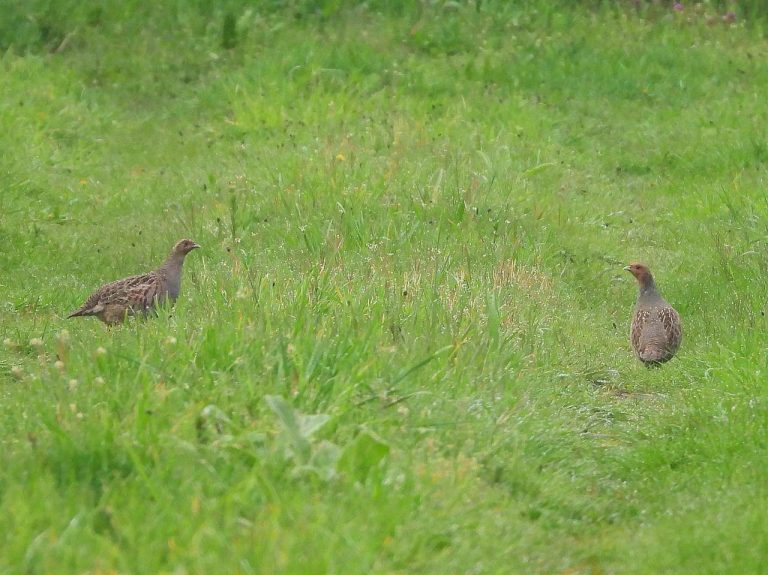 We hebben geluk, tijdens de rondleiding zien we meerdere keren hazen en zelfs een koppel patrijzen lopen. Hij denkt dit jaar 4 of 5 koppels patrijzen te hebben. Een zeldzaamheid tegenwoordig. Op het landgoed staan verder 3 stamboek brandrode runderen variant van MRU (een bedreigde soort) en 3 kempische schapen. Deze begrazen de weilanden.