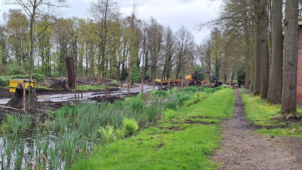 De werkzaamheden die de afgelopen maanden in de kasteeltuin uitgevoerd werden naderen hun einde. De aannemer heeft aangegeven dat ondanks de overvloedige regenval, eind april haalbaar zou zijn als einddatum. Dan is de kasteeltuin weer volledig toegankelijk en kunnen we de resultaten gaan bekijken. De officiële opening van de nieuwe landschapstuin vindt op 23 mei plaats.
