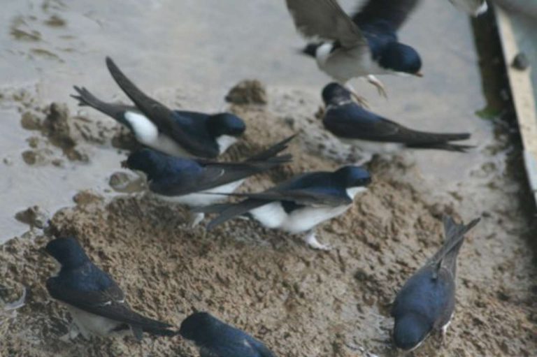 Ik hoor voor eerst het kwetterende geluid van de huiszwaluw rondom het huis. Groot is mijn verbazing als ik enkele kleiklompjes onder de gootrand van de voorgevel ontdek. Een paartje huiszwaluwen is op zoek naar een geschikte nestelplaats.