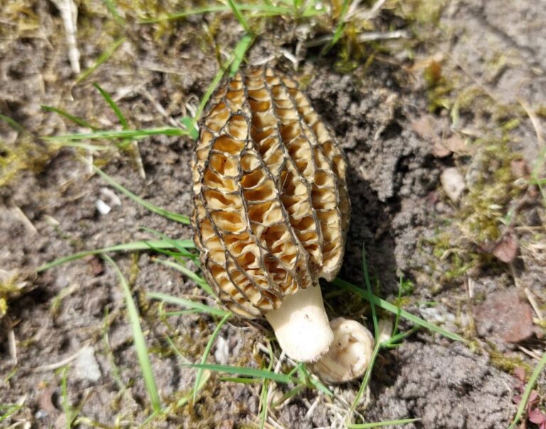 Vandaag tijdens het gras maaien heb ik een bijzondere paddenstoel ontdekt in de tuin. Ten minste dat denk ik. Volgens ObsIdentify betreft het de Kegelmorielje. Als je op de NDFF Verspreidingsatlas kijkt, zie je dat dit een vrij zeldzame soort is. Jammer dat ik ze wat laat opmerkte! Helaas is er eentje gesneuveld voordat ik ze gezien had.
