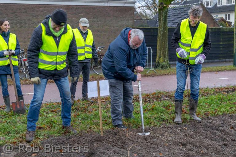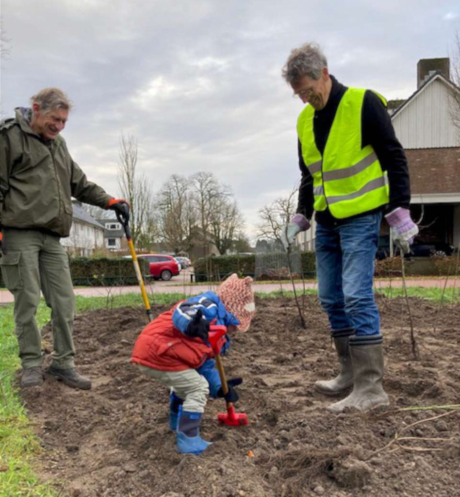 Nadat om 9.00 uur wethouder Frans Stravers samen met onze voorzitter de eerste boom had geplant, konden de vrijwilligers aan het werk. Bijzonder om te vermelden is de enthousiaste bomenplanter Turi, 3 jaar oud, die goed bezig was met zijn schep.