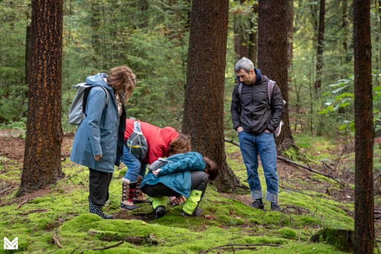 Na de tweede theorieavond gaan we weer de zaterdag erna naar het gebied de Meelakkers. Met een zakspiegeltje in de hand lopen we met Harrie naar de vele soorten paddenstoelen en zwammen, waarbij hij weer wijst op de kenmerken. Zoals het Kleverig koraalzwammetje, die je vanuit de verte al kunt zien door de gelige kleur. Zo blijkt maar weer, de natuur is zo mooi. Geef je ogen de kost en geniet!