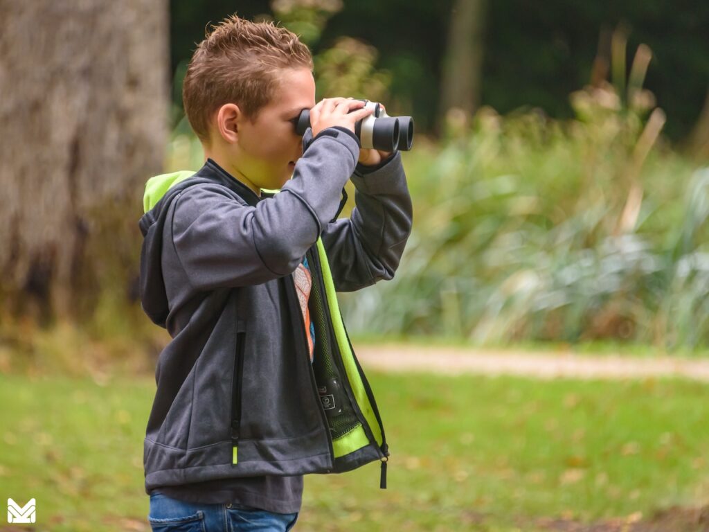 De vogels werden ‘gespot’ met een verrekijker. Daarvoor waren in de tuin verschillende afbeeldingen van vogels opgehangen waaronder de ekster, de koolmees en de ijsvogel. Het opsporen van vogels met een verrekijker was voor veel leerlingen een eerste kennismaking met dit ‘ver-wegkijk-apparaat’. Vervolgens werd gekeken naar het eetgedrag van vogels door het bestuderen van de vorm van de snavel en te beredeneren welk voedsel zij daarmee konden verschalken.