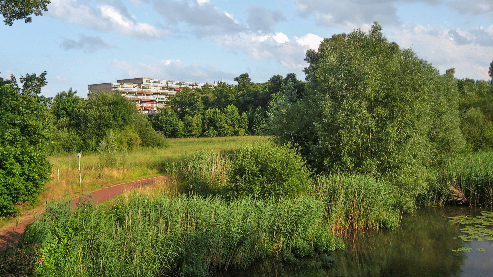 Voor de ruimte tussen bovengenoemde delen van de wijk en de Kleine Dommel ontwikkelde de gemeente in 1973 een geheel nieuwe visie. De terraswoningen, een nieuwe vorm van hoogbouw, hebben uitzicht op het beekdal en tussen de woonblokken ligt de zgn. ‘groene long’. Samen met de Kleine Dommel en het groene gebied richting de A67 met het karakteristieke ‘Eikenlaantje’, de windhondenrenbaan en het terrein voor paardenmenwedstrijden maak je met deze route kennis met een heel apart stukje natuur.