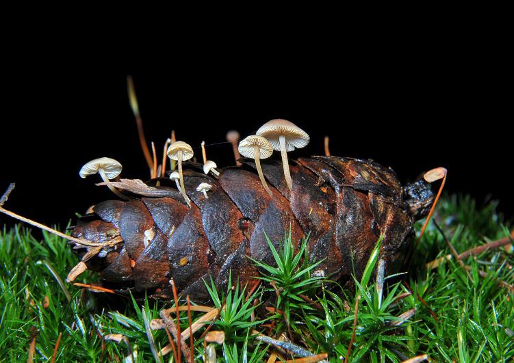 Kinderen vonden zelf ook leuke dingetjes, zoals deze muizenstaartzwammetjes op een dennenappel.