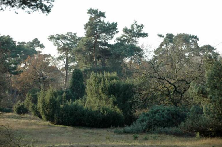 Wandelend richting oost wordt een aantal grove dennenpercelen gepasseerd. Het beheer is nu gericht op het geleidelijk creëren van afwisseling, een proces dat vele tientallen jaren in beslag neemt. Aan de noordoostzijde van het gebied verandert de plantengroei. Naaldhout maakt plaats voor berken.