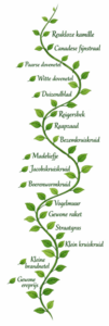 Gevonden soorten: Reukloze kamille, Canadese fijnstraal, Paarse dovenetel, Witte dovenetel, Duizendblad, Reigersbek, Raapzaad, Bezemkruiskruid, Madeliefje, Jacobskruiskruid, Boerenwormkruid, Vogelmuur, Gewone raket, Straatgras, Klein kruiskruid, Kleine brandnetel en Gewone ereprijs.