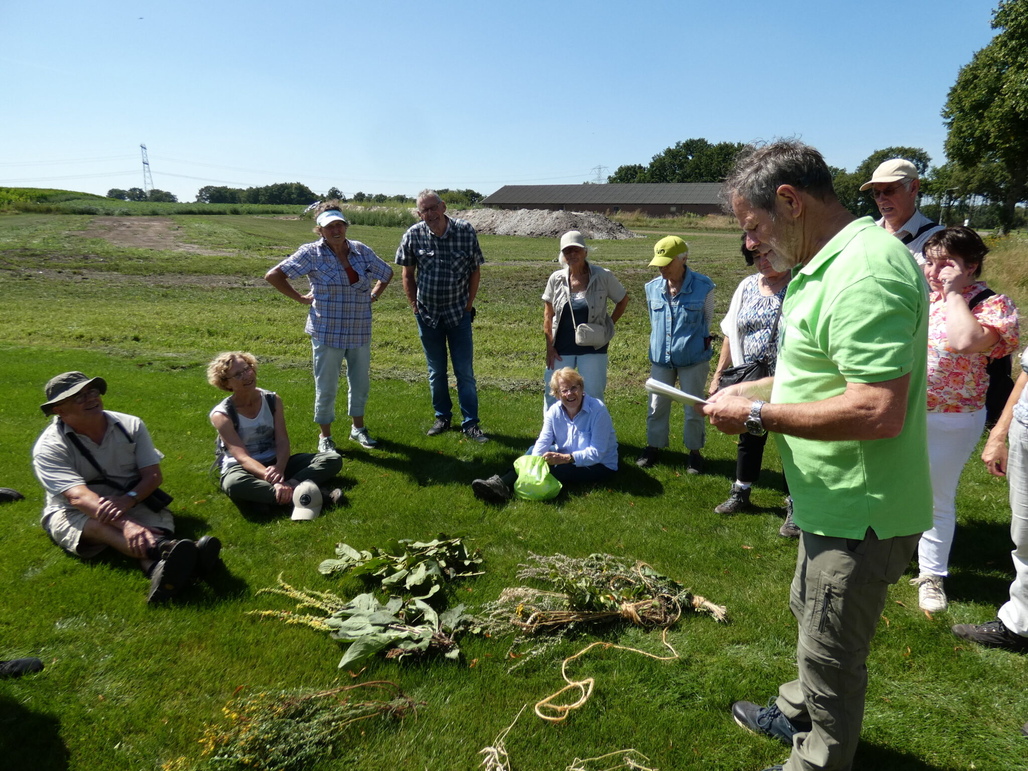 De deelnemers wandelden verdeeld over twee groepen begeleid door de gidsen Wil en Mart. De kruiden en veldgewassen die er gebruikt worden zijn niet overal hetzelfde. Hier in Venray gebruiken ze zeven verschillende kruiden, veldgewassen.