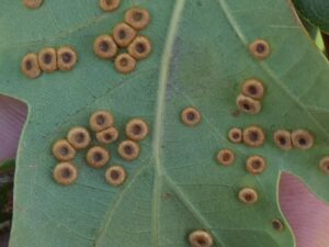 Daarnaast wezen de gidsen ook op andere interessante verschijnselen in de natuur zoals de ‘satijnen knoopjes galwesp’ of ‘Maïsbrand’ een paddenstoel die je aantreft in maïsgewassen.