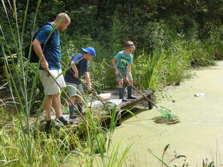 Het was een gezellige dag met allerlei activiteiten. Er werden schepnetjes gemaakt van panty’s en ijzerdraad en natuurlijk een stok. Er werd een memorie gespeeld van waterdiertjes, die je tijdens het scheppen in de poel ook tegen kon komen. En er was een activiteit waarbij je de pH-waarde van het slootwater controleerde. En nog meer proefjes rondom het slootwater en andere vloeistoffen.