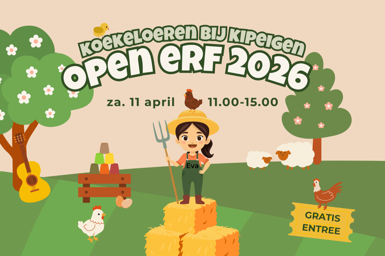 Op zaterdag 11 april zwaaien de hekken van Natuurboerderij KipEigen wagenwijd open voor Open Erf 2026. Van 11.00 tot 15.00 uur verandert de boerderij in een levendig decor waar je vrij kunt ronddwalen tussen dieren, verhalen en verrassingen. Verwacht kleine workshops, ‘oudhollandsche’ spellen, een wilde flora wandeling en levende fruitautomaat, maar ook schminken, op bezoek bij de kippen en op de kiek met de riek. Voor nieuwsgierige neuzen van alle leeftijden. En ja, de entree is gewoon gratis. Producten van het land of consumpties zoals een Broodje Natuurherstel kun je contant of met pin betalen. Tot snel op het erf, Nieuw-Loosdrechtsedijk 24 in Loosdrecht (links achter verzorgingstehuis De Beukenhof). Tip: kom zoveel mogelijk lopend of met de fiets.