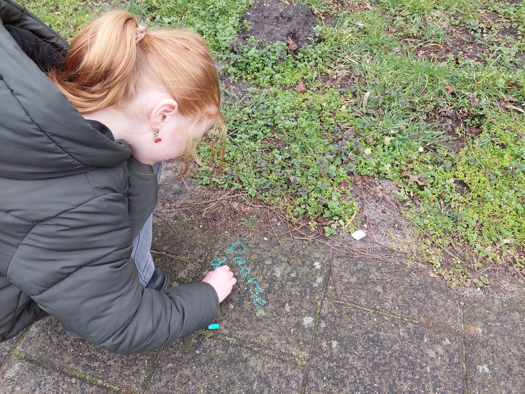 Aan jullie de eer om met de krijtjes namen bij de stoepplantjes te schrijven zodat ze ook zichtbaar zijn voor andere mensen.