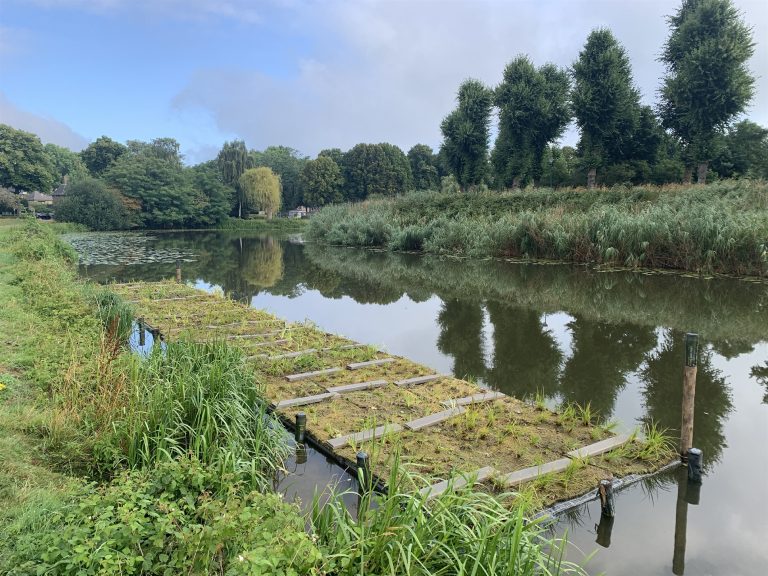 De aannemer heeft in de afgelopen maanden hard gewerkt om alle graafwerkzaamheden in de gunstige zomerperiode af te ronden. Voor de bouwvak zijn onder andere de drijvende eilanden (zie foto) geplaatst en een windwatermolen.