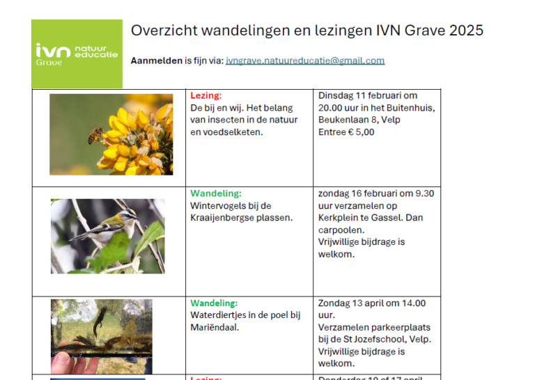 Regelmatig organiseert IVN Grave wandelingen en lezingen voor een groter publiek.