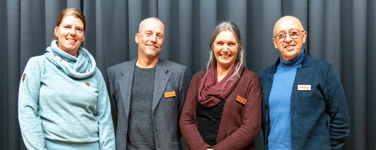 De vier nieuwe natuurgidsen. V.l.n.r.: Sylvia Thuis, Hans Stoelwinder, Hermien Arts, Jan van den Heuvel