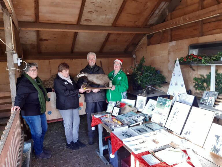 Tijdens de Kerstmiddag op 22 december heeft IVN Grave foto’s laten zien. Ook was er een stand waarbij bezoekers meer konden leren over vogels, met de nadruk op uilen en braakballen. Henk kon opgezette vogels lenen van Brabants Landschap, waarbij een kerkuil zelfs een muis in zijn klauw had. Braakballen werden enthousiast uitgeplozen, de botjes werden vol interesse onder een vergrootglas bekeken. Tot slot mochten kinderen zelf een muis vangen, die door een buis naar beneden gleed. Natuurlijk hadden ze altijd prijs. De stand werd goed bezocht, de dag was geslaagd.