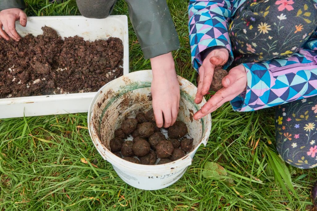 Ook werden er zal zaadbollen gemaakt, die later bij de plukweide worden uitgegooid. Hopelijk wordt de plukweide een mooie bloemenzee.
