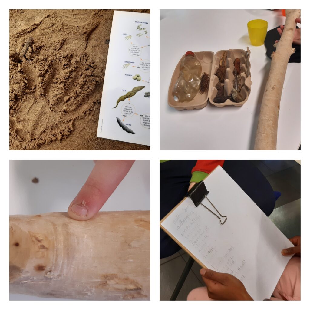 In de pauze besproken we de natuurmomenten, daarna hebben we het uitpluizen afgerond, en was er tijd voor de kinderen om buiten in het belevingsbos stoom af te blazen.