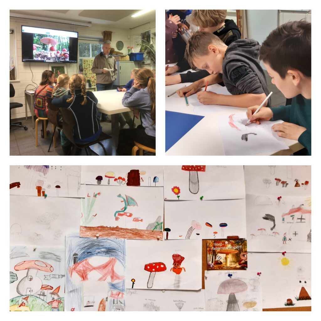 Op 1 november hadden we een ochtend over paddenstoelen. We begonnen met een film en uitleg over wat paddenstoelen precies zijn en hun functie in de natuur. Daarna gingen we buiten zoeken. Omdat het teveel regende gingen binnen paddenstoelen natekenen. Sommigen tekenden precies na wat ze gezien hadden. Anderen zouden illustrator kunnen worden. Erg mooi om te zien.