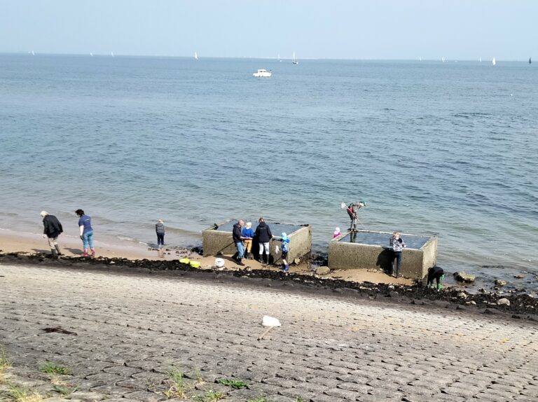Alle diertjes worden zorgvuldig bekeken en bewonderd. Met de deskundige uitleg van Ineke is het een reuze interessante ochtend. De oesters en kokkels die zij mee had genomen om te proeven vonden gretig aftrek, iedereen wilde dat wel proberen. Het was een super interessante ochtend met mooi weer.